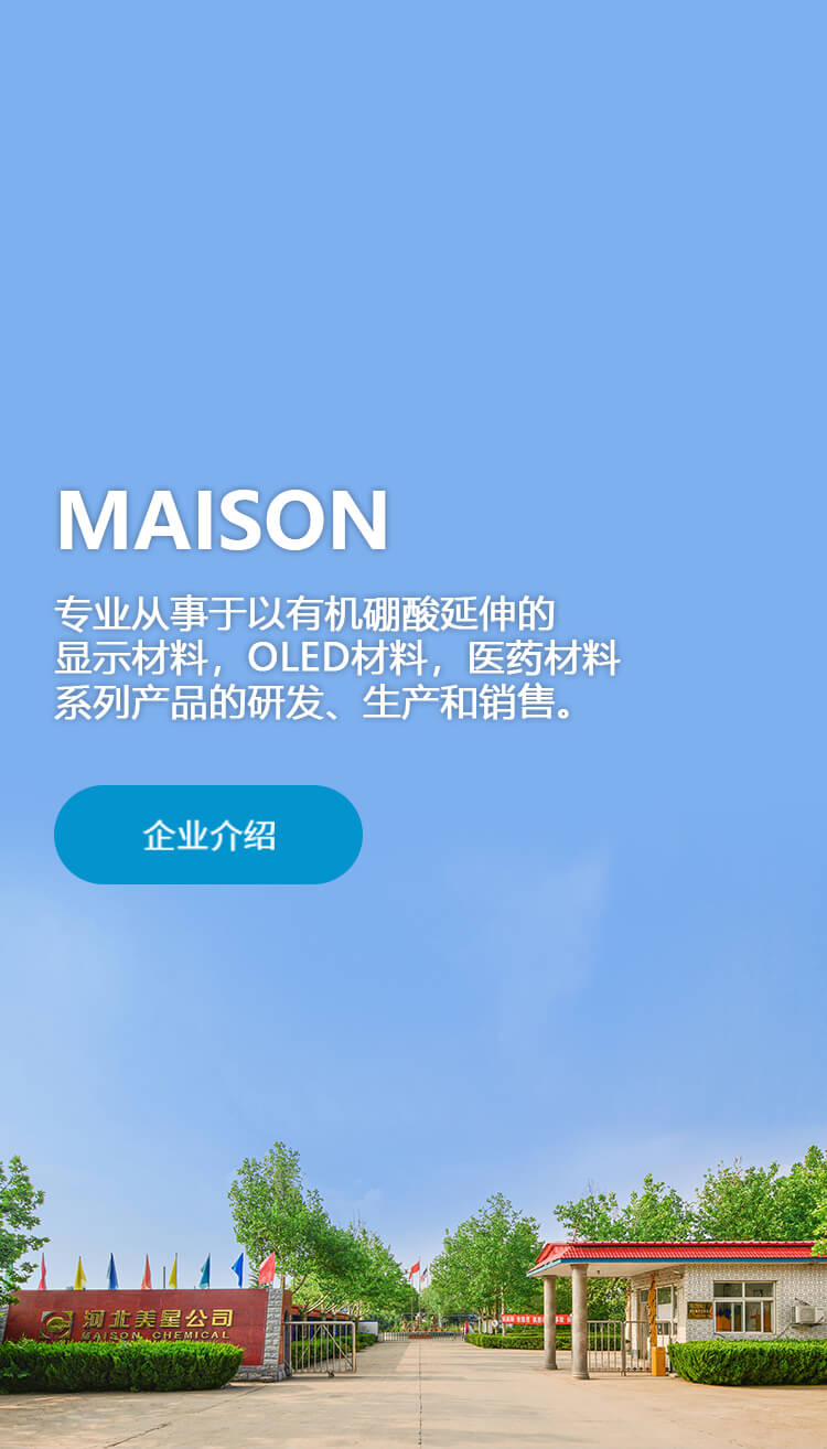 成立于2006年5月,專業(yè)從事有機硼酸、醫(yī)藥中間體、OLED中間體及液晶材料研發(fā)、生產(chǎn)、銷售的中外合資的高科技企業(yè)。產(chǎn)品廣泛應(yīng)用于醫(yī)藥、半導體顯示材料等領(lǐng)域。